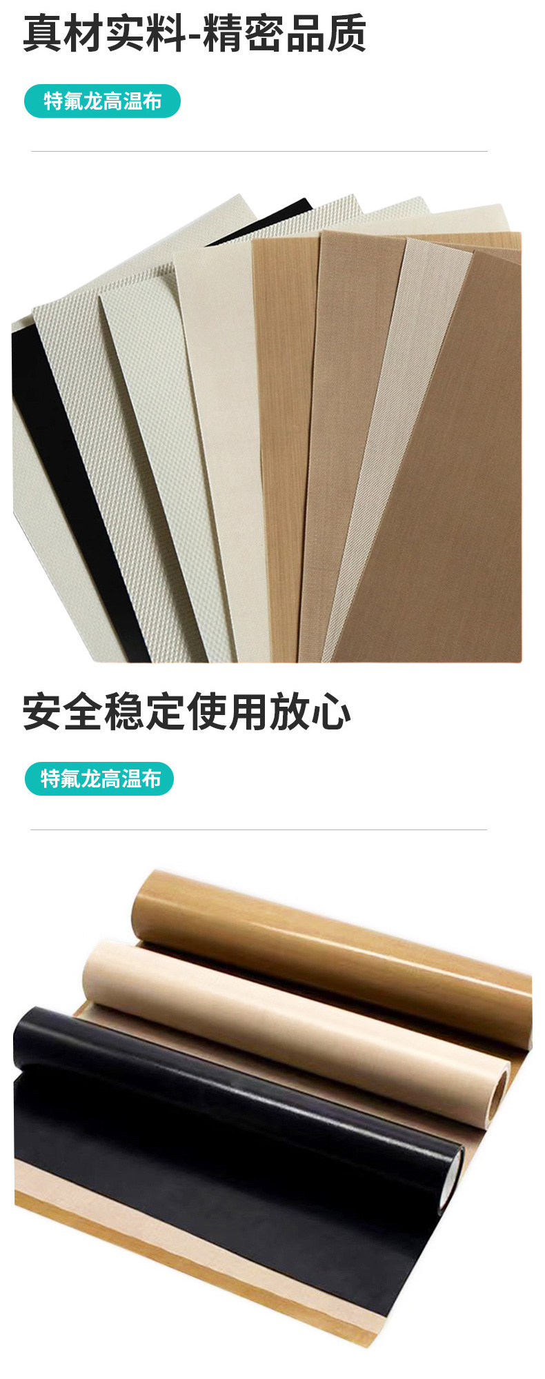材質特性:特氟龍高溫布由特氟龍(PTFE)材質制成,這種材料具有出色的耐高溫性能、耐腐蝕性和不粘性能。這使得特氟龍高溫布在高溫環境下仍能保持穩定的物理和化學性能,適用于烤箱等高溫設備的脫模和隔熱需求。